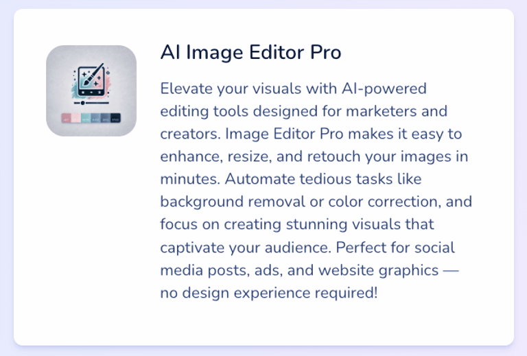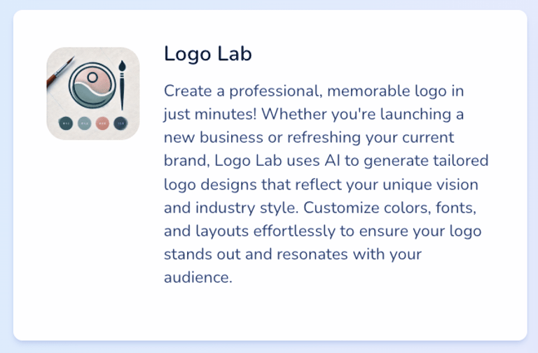 Get instant access to 20+ powerful AI tools that simplify branding, marketing, and content creation.